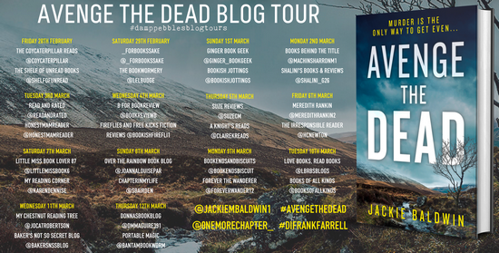 Today I’m pleased to welcome the Book Tour for the police procedural Avenge the Dead by Jackie Baldwin. Along with this spotlight post, I’ll be giving my take on the novel here in a bit. Be sure to check out the Giveaway at the bottom of this post. But let’s start by learning a little about this here book, okay?