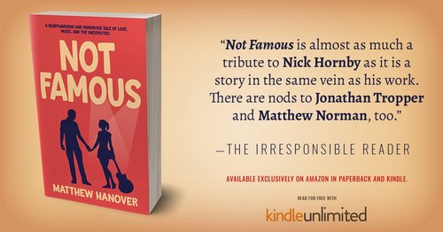 For years, one aspect of Marvel (and related) movies that was a sure-fire pleaser was the inventive way that Stan Lee would show up in some sort of cameo. Hanover’s not quite at that point with the singer-songwriter that was at the center of his first novel, Not Famous, but it’s in sight.